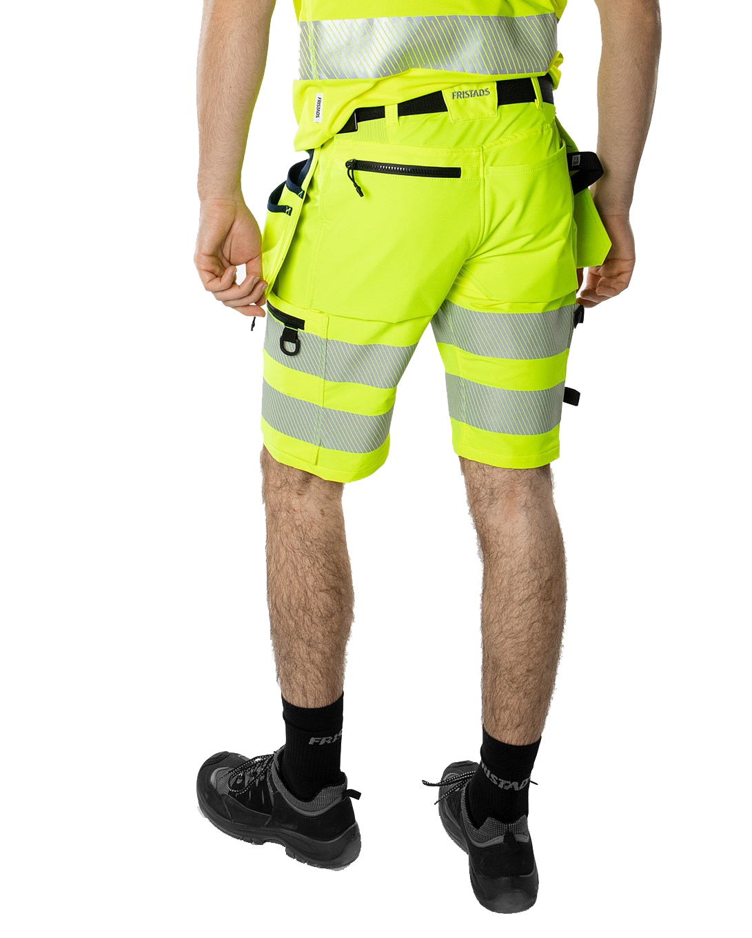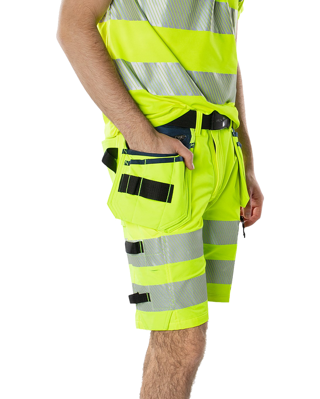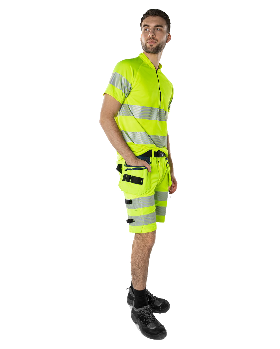 Sustainable, high-visibility artisan stretch shorts made from bio-based and recycled materials. Full 4-way stretch and additional stretch panels at the waistband offer excellent comfort and freedom of movement. With EPD (Environmental Product Declaration). Concept: Stiby