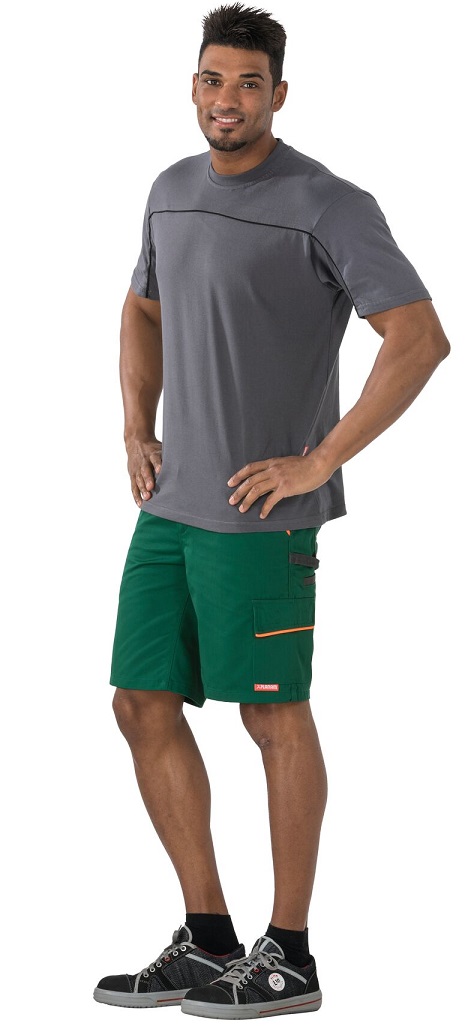 2 set-in pouch pockets, double ruler pocket, left thigh pocket with flap and Velcro fastener, mobile phone pocket, elastic waistband, 2 hip pockets with flaps, zip in trouser fly, pocket openings and pocket flaps with coloured piping.