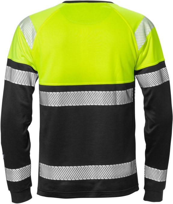 High visibility T-shirt with long sleeves and reflective stretch trim for greater freedom of movement. Made of a soft and comfortable material with cotton on the inside. Wicks moisture, dries quickly and is UV protected.