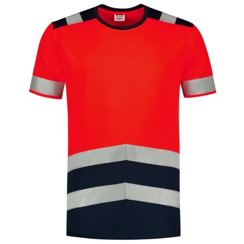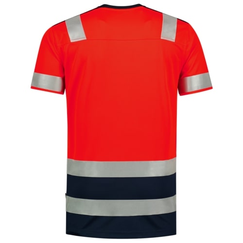 The high visibility T-shirt Bicolor is part of the Tricorp 20/20 Vision collection. The T-shirt is made of 50% polyester and 50% CoolDry polyester and offers protection from the sun with a UPF40+. The CoolDry material is characterized by its moisture-regulating and breathable properties. The T-shirt is certified to EN ISO 20471:2013 Class 1. This means that the wearer is visible and protected day and night. The T-shirt is equipped with additional reflective strips on the sleeves, guaranteeing even greater visibility. The T-shirt is washable at 60˚C and is therefore hygienically clean.