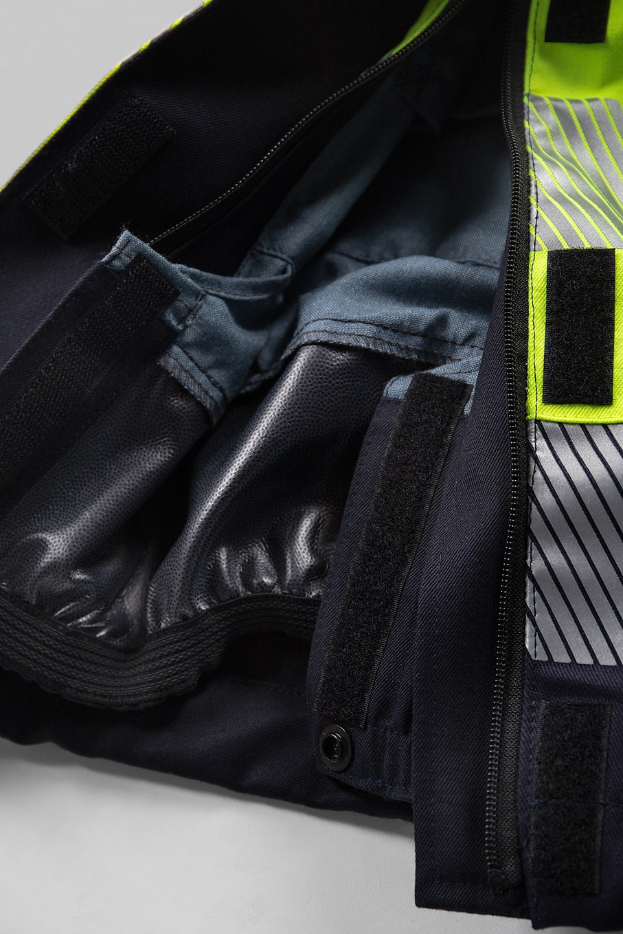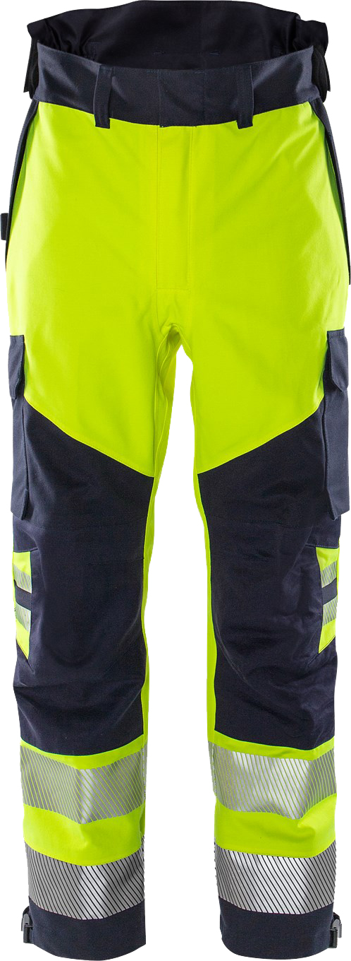 Flame-retardant multi-norm shell trousers made from a waterproof, windproof and breathable material. Comfortable trousers with inherent flame protection. Equipped with knee pockets and elastic suspenders.