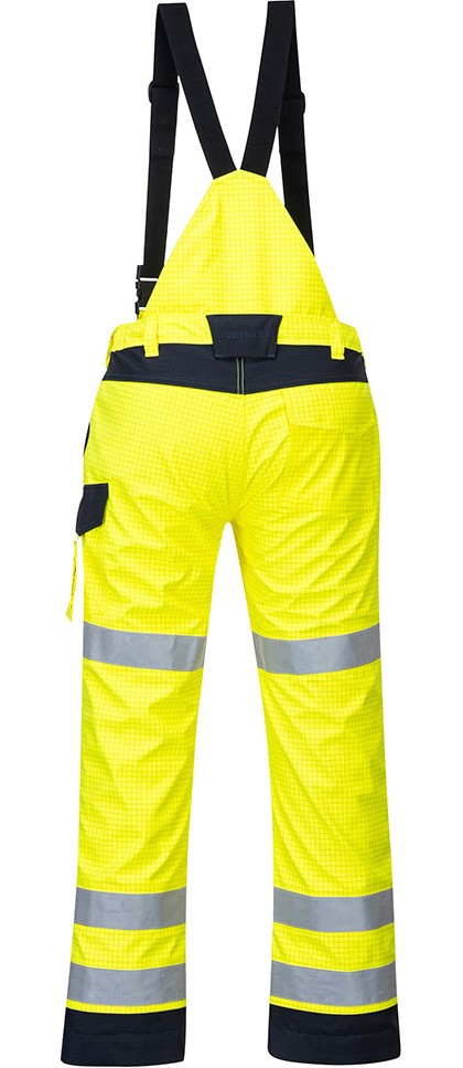 The Modaflame Rain Multi-Norm Arc Pants offer full protection from a range of standards and are packed with features. With a zipper feature on the back, the bib can be completely removed to turn it into a pair of trousers that enhance its overall versatility. The reflective FR tape improves visibility, while contrasting knee panels and hem protect against dirt. Outer fabric: 98% polyester, 2% carbon fibre with a breathable, flame-retardant PU coating and a 60% modacrylic, 40% cotton flame retardant underfabric, total weight 350gcontrast fabric: 100% cotton lining flame retardant 170g Standards ELIM TESTING IN PROGRESS EN ISO 11612 A1, A2, B1, C1, E3, F1 EN ISO 11611 Class 2 A1+A2 EN 1149 -5 IEC 61482-2 IEC 61482-1-2 Class 2 EN 13034 Type 6 EN ISO 20471 Class 2 RIS 3279 - TOM ISSUE 1 (ORANGE ONLY) EN 343 Class 3:1 Functions CE-CAT III Waterproof fabric, flame retardant, prevents the penetration of moisture. Protection against radiant and convective heat Antistatic Sewn on flame-retar