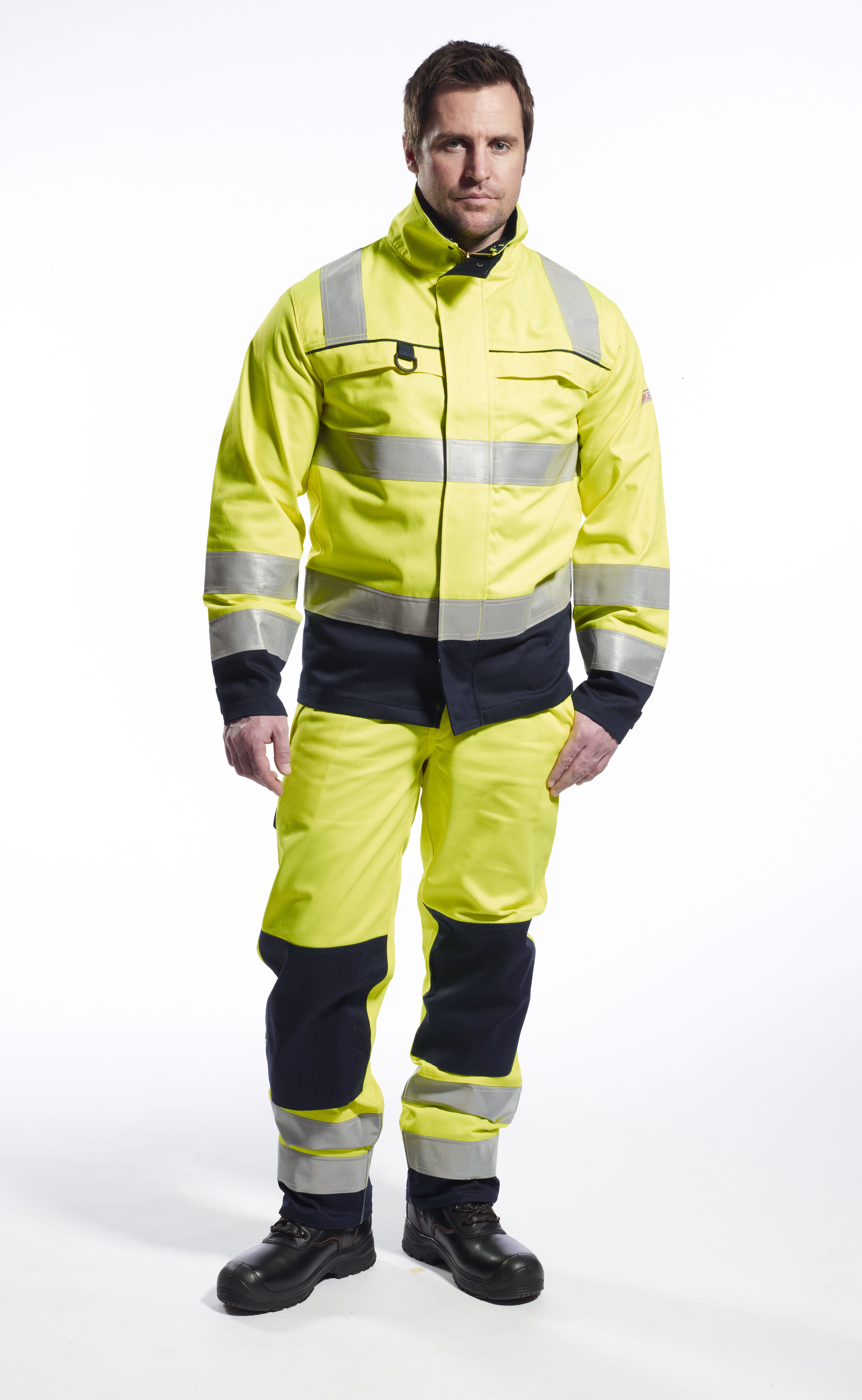 Product information:The FR61 is made from the innovative flame retardant Bizflame Multi fabric. This jacket offers protection against heat, fire, chemicals, arc faults and Gefahren during welding. With double stitched reflective stripes on chest, arms and shoulders, concealed 2-way front brass zipper and chest pockets with piping.Bizflame Multinorm workwear made of 99% cotton, 1% carbon fibre 345g. Bizflame Multi is designed to provide warning, flame, welder, arc and antistatic protection and guarantees superior wearing comfort. This advanced fabric is worn by thousands of workers in many industries. Bizflame Multi has a dirt-repellent fluorocarbon finish, liquids simply roll offflame retardant:This industry-leading collection offers multi-standard protection for potentially explosive atmospheres. These state-of-the-art products are the result of many years of experience, state-of-the-art technology and market research. A commitment to the health, safety and comfort of the wearer can b