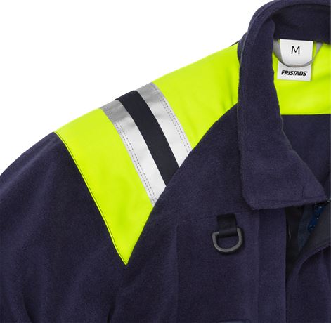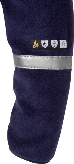 Fleece jacket with inherent flame protection, suitable for ATEX environments, without metal parts. Suitable for industrial washing.