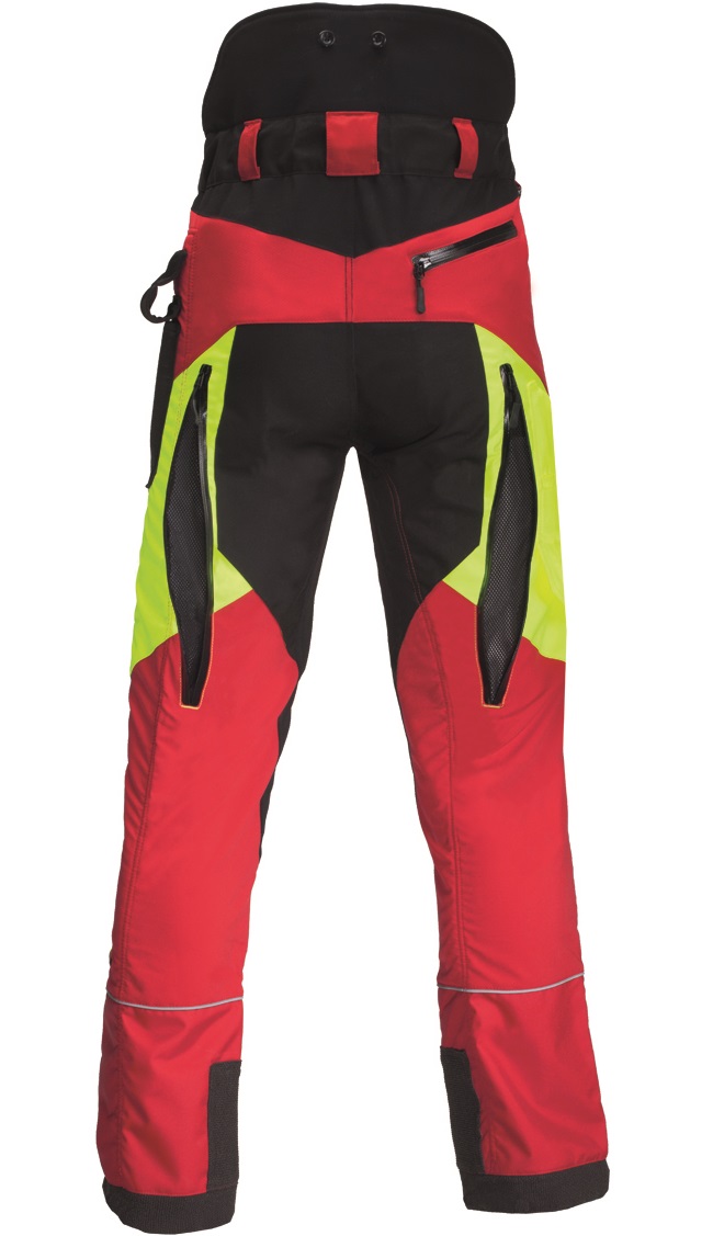 The X-treme Air cut protection pants are the result of our collaboration with experienced professionals who work in the forest all year round. The X-treme Air impresses with its sporty and fresh design. When selecting the outer fabrics, our attention was paid to durability, breathability and, above all, lightness. Thanks to new and only 5 layers of Dyneema cut protection insert " 5x5 cutprotection® " we were able to reduce the weight to a minimum without neglecting the safety of the pants. On the front leg side, the pants are equipped with a waterproof outer fabric up to above the knee area. We have pulled this through to the rear calf area for better protection against moisture. This has the effect that the outer fabric can not soak up with wetness. In the lower leg area is a drawstring with hooks, with which the pants can be fixed firmly on the forest shoe. This prevents the pants from slipping up when working in brambles or snow. On the back of the pants are long ventilation zipper