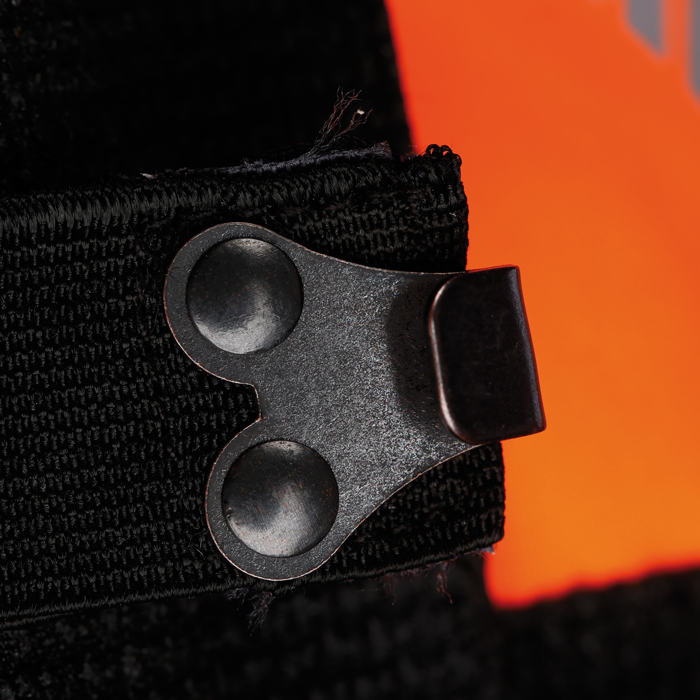 Auf der vorderen Beinseite ist die Hose bis über den Kniebereich mit einem wasserdichten Oberstoff ausgestattet. Diesen haben wir zum besseren Schutz vor Nässe bis in den hinteren Wadenbereich durchgezogen. Dies hat zur Folge, dass der Oberstoff sich nicht mit Nässe aufsaugen kann. Im unteren Beinbereich befindet sich ein Tunnelzug mit Haken, mit dem die Hose fest auf dem Forstschuh fixiert werden kann. Dadurch wird ein hochrutschen der Hose, bei Arbeiten in Brombeerschlägen oder im Schnee verhindert. Auf der Hosenrückseite befinden sich lange Belüftungsreißverschlüsse, hierbei handelt es sich, nach unserer Meinung, um die wirkungsvollste Belüftungsöffnung die es je gab.