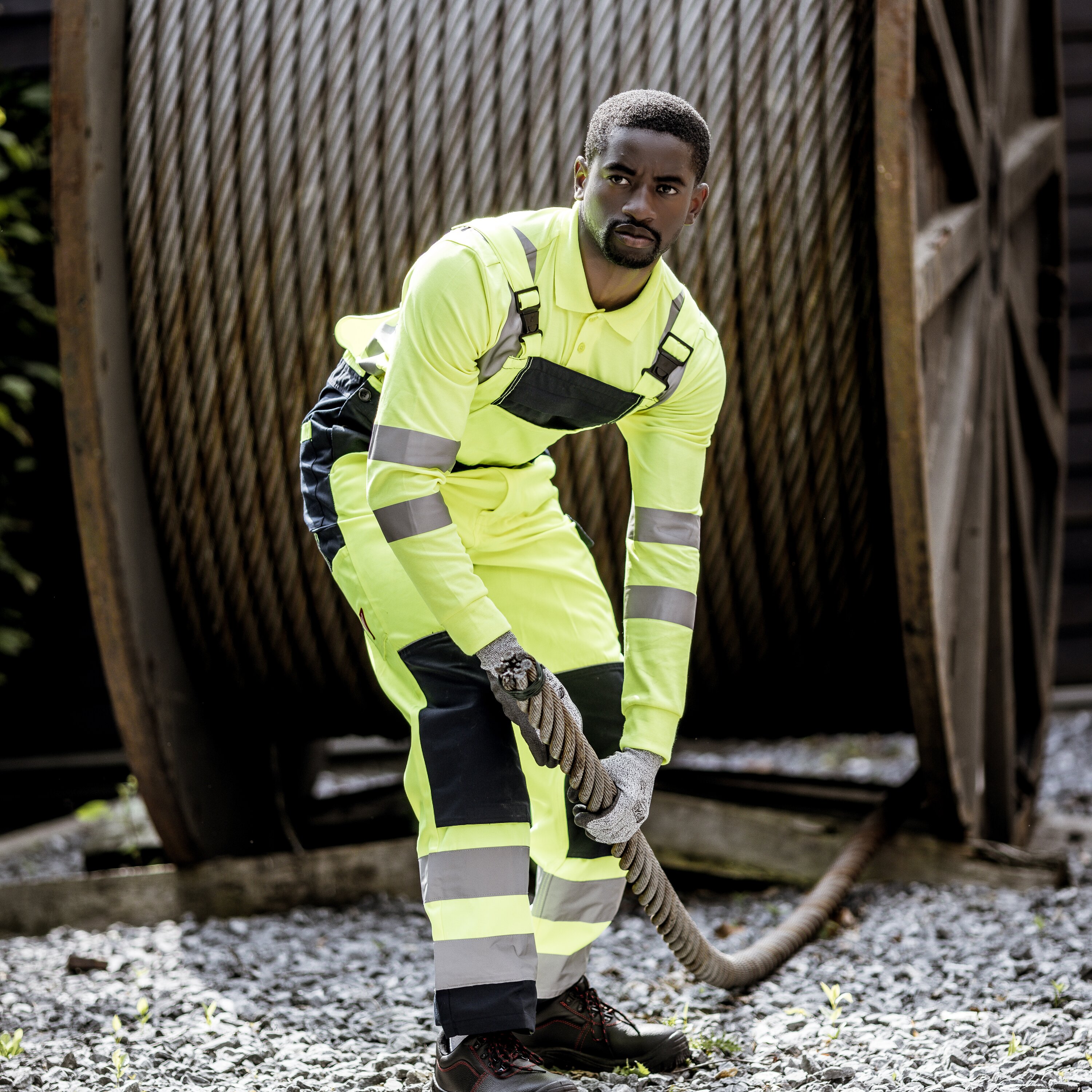 NITRAS MOTION TEX VIZ, high visibility dungarees, different colors, 280 gsm, breathable and light material, high wearing comfort, stretchable waistband, reinforcements on leg