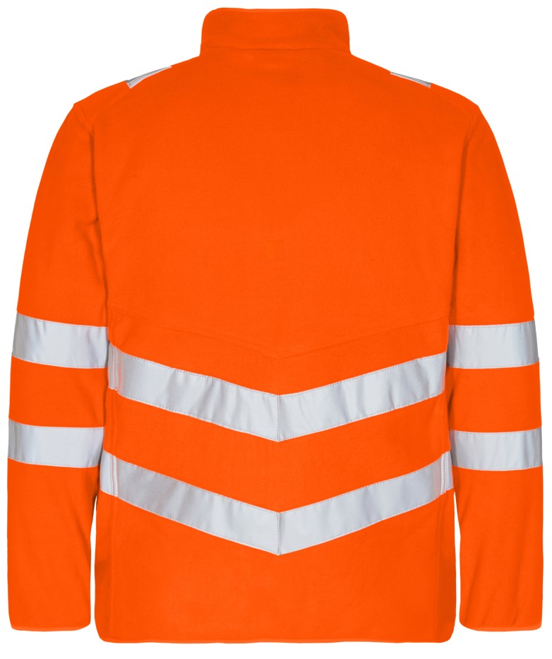 Functional, fluorescent fleece jacket in a modern, attractive design with stretch lining. The jacket is lined with fleece at the collar, making it soft and comfortable against the skin. Reflective zipper at the front. The jacket can be combined with the 1146-930 models, which have a zipper for zipping in. Two spacious side pockets and a chest pocket, each with a zipper. Two large inside pockets with Velcro fasteners. The jacket has an elastic waistband at the bottom. Sleeves with elasticated wind cuffs with thumb opening. Sleeves with elasticated wind cuffs with thumb opening. Additional storm flap made of elastic material in the sleeves. The storm flap with thumb opening can be pulled over the hand to protect against the cold. Reflective stripes across the shoulders and around the sleeves and waist. Clothing class 2, tested after 25 washes.