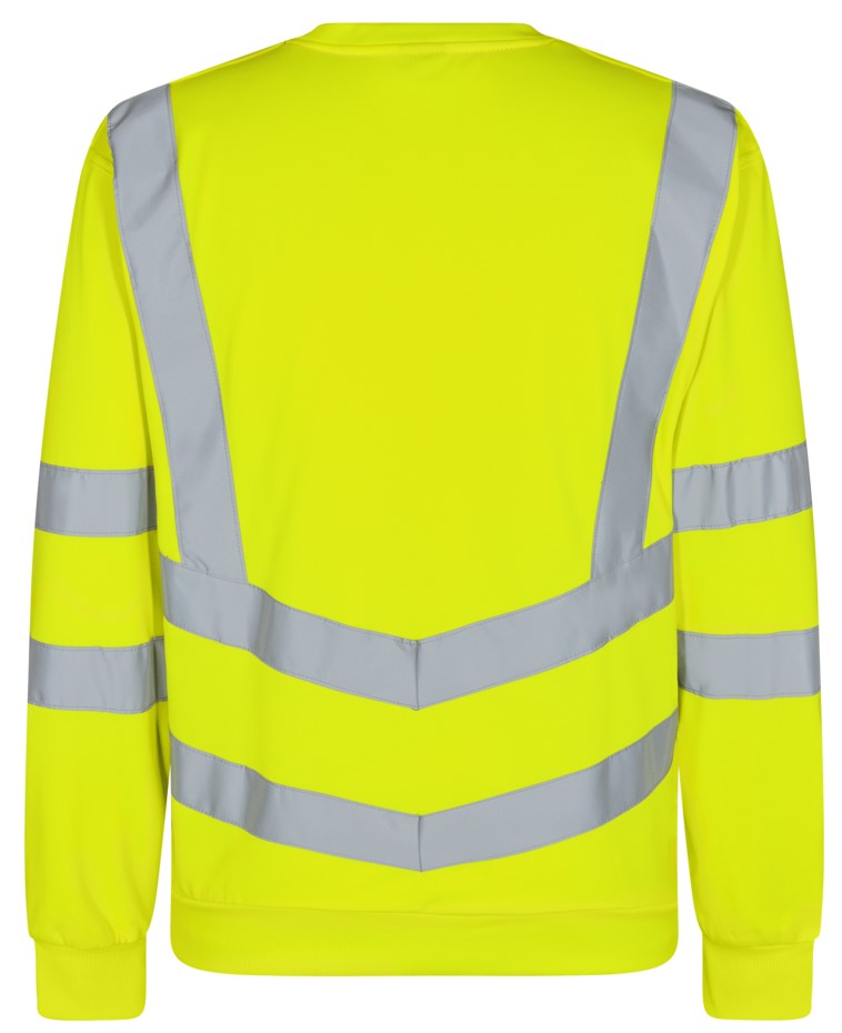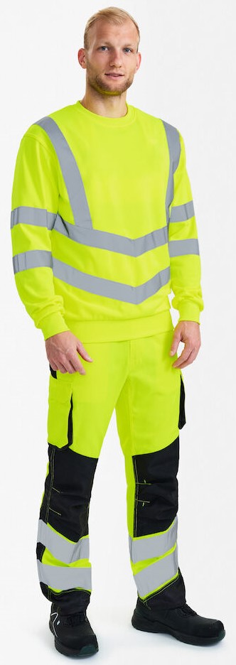 Comfortable, fluorescent sweatshirt in a modern design. Slightly brushed inside, making the fabric soft and comfortable. Ribbed neckline, sleeves and bottom hem. Stretchy reflective stripes across the shoulders and around the sleeves and waist. Clothing class 3, tested after 25 washes.
