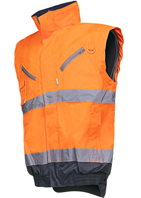 Our Campbell warning blouson jacket offers excellent protection against cold and rain. Not only is the blouson waterproof, but the Siopor® quality ensures that the jacket continues to breathe, so you never get an uncomfortably clammy feeling. On warmer days the fleece lining can be zipped off. The hood and sleeves are also removable. With arm, chest and side pockets this is a very functional blouson with storage space especially for pens, cell phone and ID card. This light jacket with extended back can be easily adjusted to your body by the narrowing possibility at the wrist and the waist. In short, the Campell-Jacket is the perfect winter blouson to work visibly and comfortably in wind and weather.