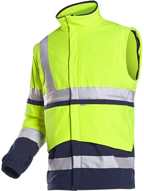 Looking for a work outfit for all weather conditions? With its removable softshell jacket, the Powell warning rain parka is perfectly tailored to your needs. This high-quality 4-in-1 model is made of a strong yet light, supple and breathable material. The rain parka with knitted cuffs on the sleeves has a removable hood, 2 pockets on the outside, 1 inside pocket and 1 Napoleon pocket. Thanks to the elastic drawstring waist and the elastic joint band with narrowing possibility you can fully adjust this light rain jacket to your body. The removable softshell jacket has 1 inside pocket and 2 side pockets. The detachable sleeves have an elastic band at the wrist.