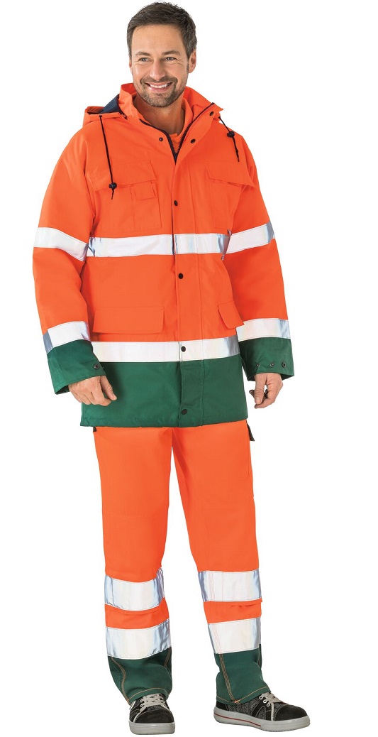 Breathable, wickserdithrough PLANAMTEX-coated fabric back and glued seams, detachable hood, removable lining, 2 patch breast pockets with flap and 3 pen pockets and right mobile phone pocket, full-length front zip with flap and press studs, drawstring waistband, adjustable cuffs.