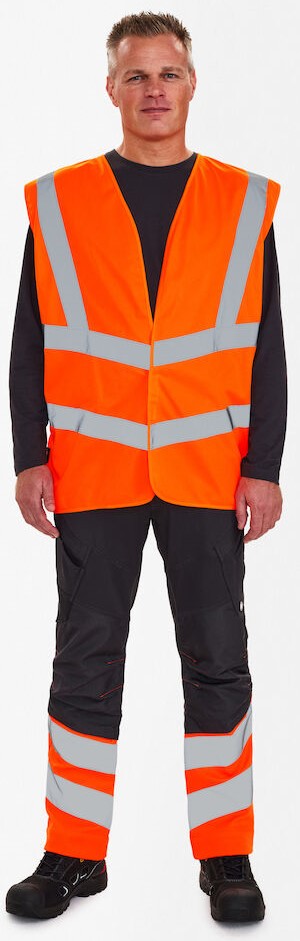 Lightweight, comfortable traffic vest with Velcro fastener. Reflective stripes on the torso and over the shoulders. Clothing class 2, tested after 25 washes.
