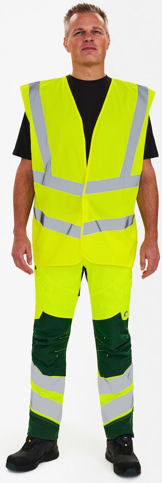Lightweight, comfortable traffic vest with Velcro fastener. Reflective stripes on the torso and over the shoulders. Clothing class 2, tested after 25 washes.