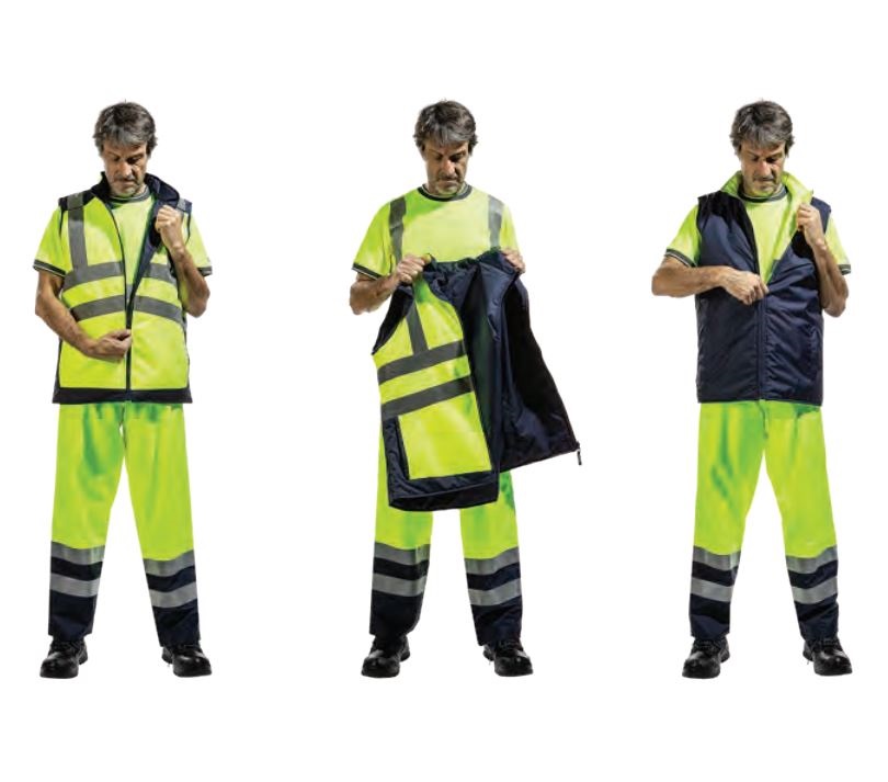 Our Burton reversible vest is a modern, warm, comfortable and windproof bodywarmer. The water repellent outer material keeps you perfectly dry. The inside of the fabric has a moisture-absorbing coating so that you will never experience an unpleasant clammy feeling. This multifunctional winter vest with reflective stripes is also reversible. With 2 inside pockets and 2 outside pockets you will never lose any storage space, no matter how you wear the bodywamer.