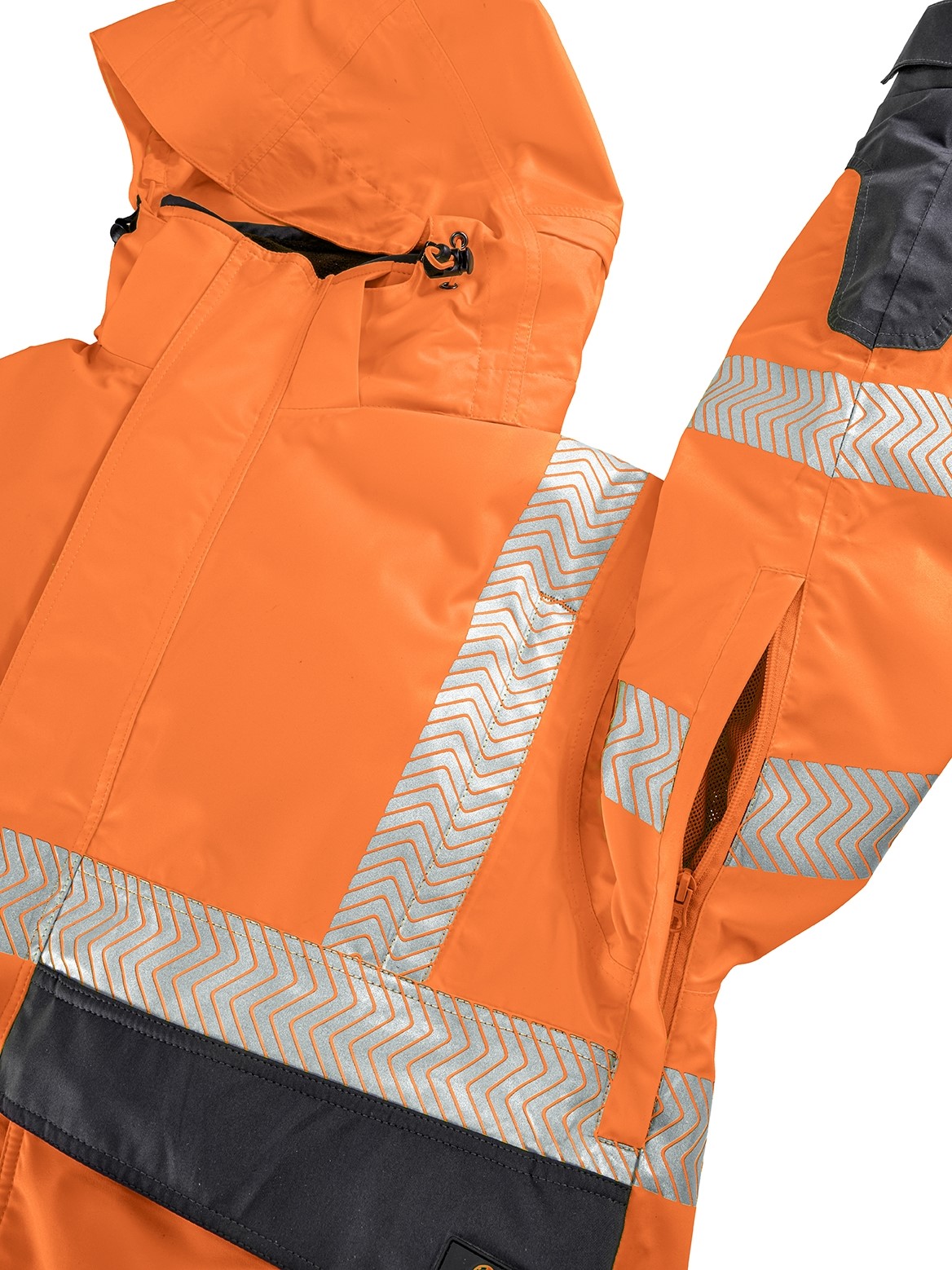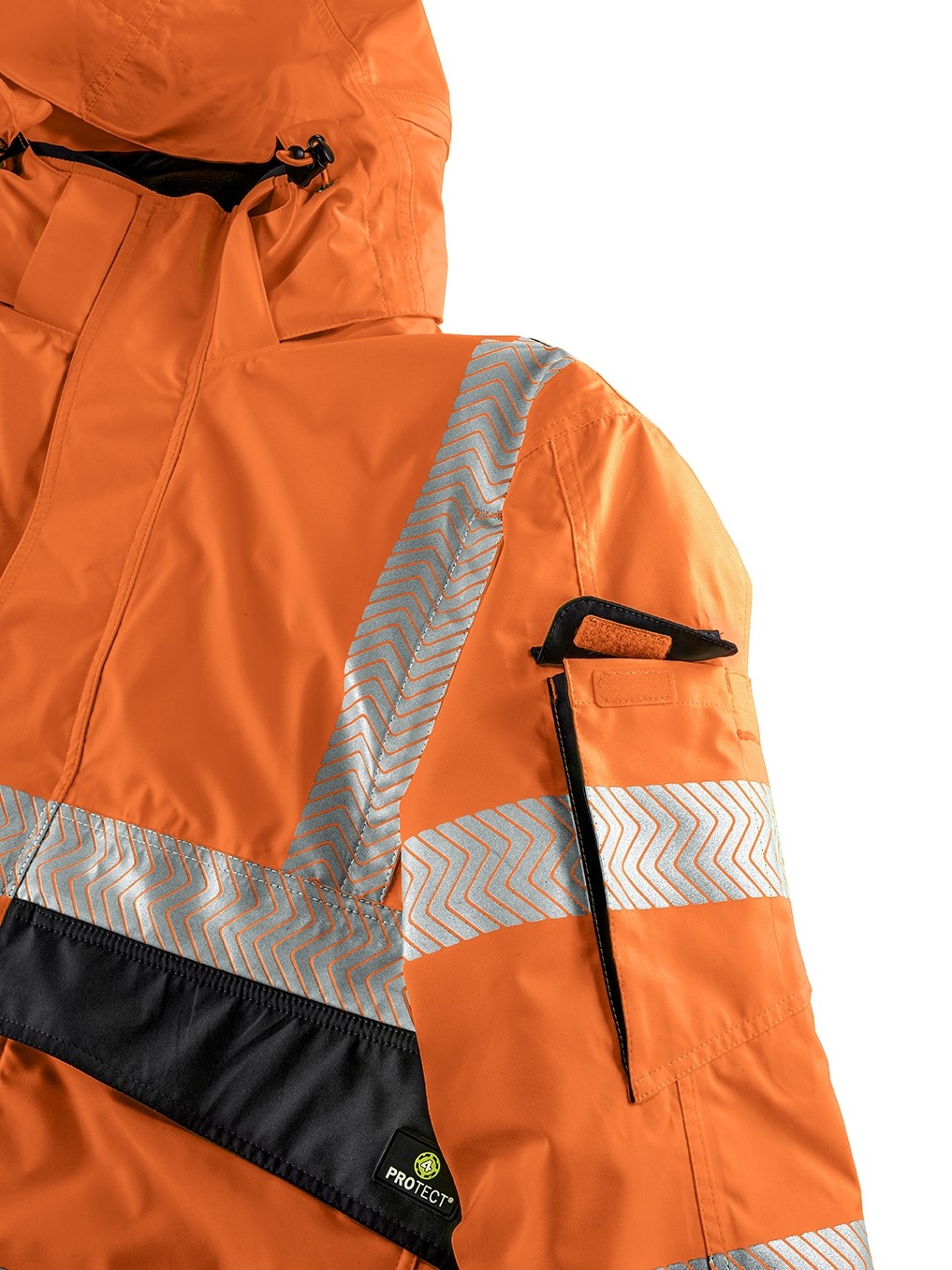 Applicable in all hazards due to limited visibility, the NEWARK blouson also protects against bad weather with its windproof and waterproof PTFE membrane. With the extremely light and breathable 4PROTECT®HEATING lining in combination with the Fellex® Fast Heat Insulation padding, the cold stays outside the blouson. High breathability also allows for a long wearing time. This is supported by functional details, such as a double-covered front zipper and a zip-off storm hood with various adjustment options. The dark-trimmed hem and cuffs protect against quick soiling, and the removable ID pocket offers thoughtful functionality. In addition, NEWARK offers the uncomplicated possibility of printing in different formats (e.g. 100 x 50 mm chest and 150 x 100 mm back) through a service zipper, without a devaluing influence on the high-visibility classification.