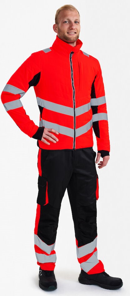 Warm, fluorescent jacket in a modern design with wind and water-repellent properties. The jacket can be combined with the 1146-930 models, which have a zipper for zipping in. Reflective zipper at the front. Two side pockets and chest pocket with zipper. The jacket has an elastic waistband at the bottom. Additional wind flap made of elastic material in the sleeves. The storm flap with thumb opening can be pulled over the hand to protect against the cold. Reflective stripes across the shoulders and around the sleeves and waist. Clothing class 2, tested after 50 washes.