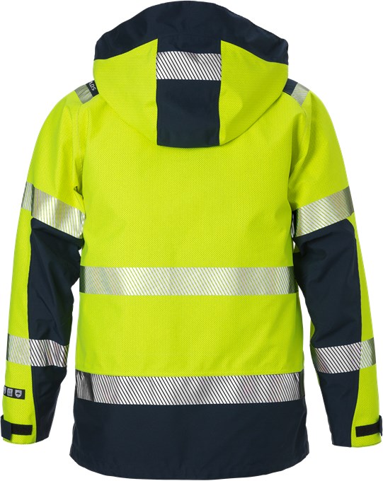 Flamestat High Vis GORE-TEX jacket with PYRAD® technology. The ultimate multinorm protection with high comfort in very lightweight GXE material. Market leading and unique. The high-visibility jacket is made of 2-layer GORE-TEX PYRAD® material, is permanently wind and waterproof, breathable and dirt and oil repellent. Equipped with lightweight lining, reflective stripes leading over the shoulder and removable, adjustable lined hood.