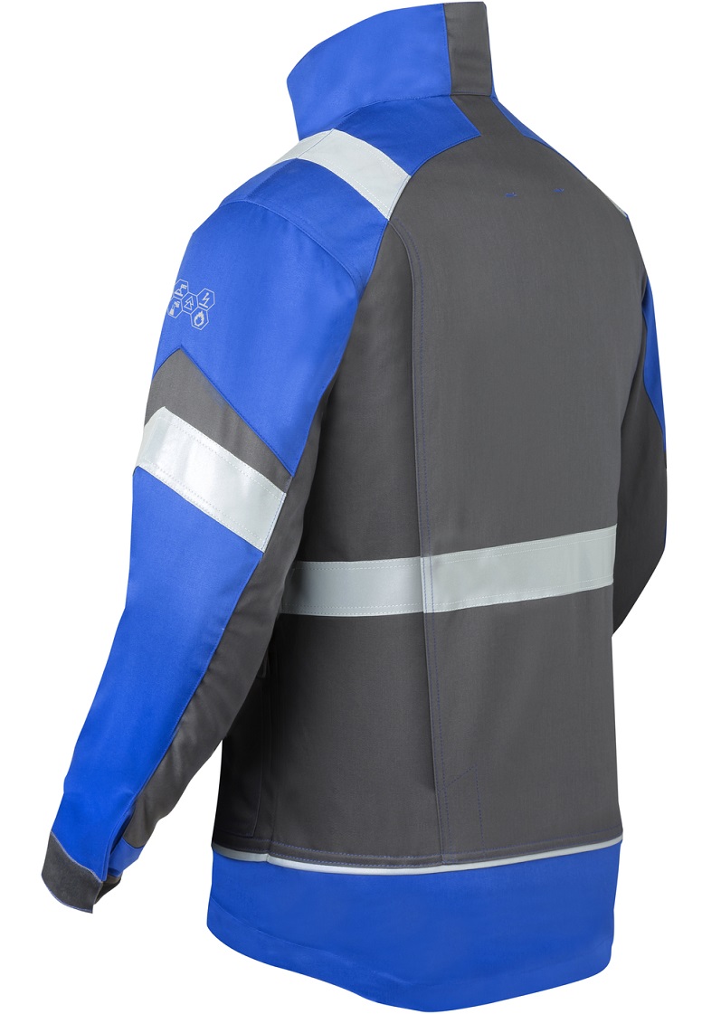 The flame-retardant and antistatic short jacket from the HAVEP® 5safety Image+ collection meets 6 standards and is made of cotton/polyester.