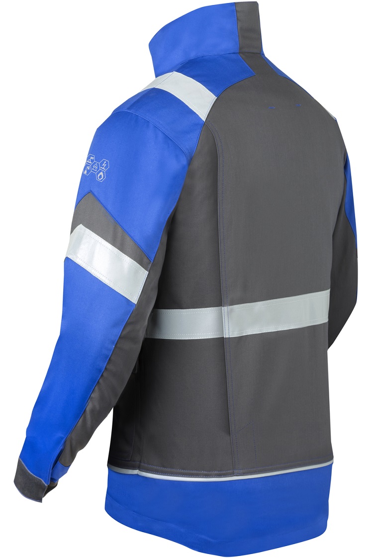 The flame-retardant and antistatic short jacket from the HAVEP® 5safety Image+ collection meets 6 standards and is made of cotton/polyester.