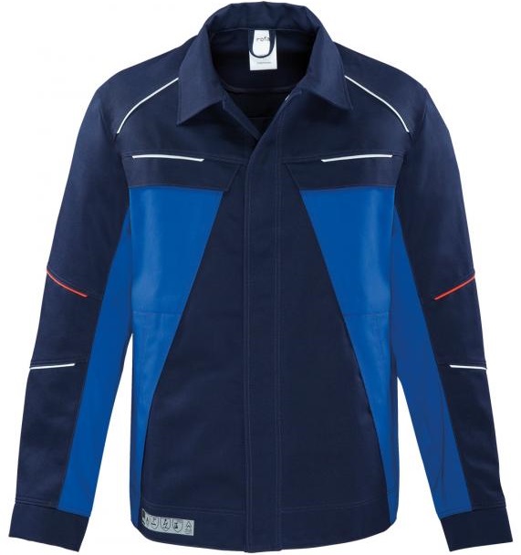 The ROFA PRO-LINE waist jacket in two-colour design made of flame-retardant Proban® fabric offers a high level of protection when exposed to heat and flames and is particularly suitable for work with molten iron. The jacket also protects against welding and electric arc hazards and has additional electrostatic dissipative properties to protect against small amounts of sprayed or splashed chemicals. The sleeves with extra lever length and width-adjustable cuffs, the extended back and the movement folds in the back create a lot of freedom of movement and a particularly comfortable wearing feeling. Luminous contrast piping on the sleeves and intelligently positioned reflective piping on the front and back provide a dynamic and modern appearance. The cross back pleat allows for standard-compliant emblem attachment.