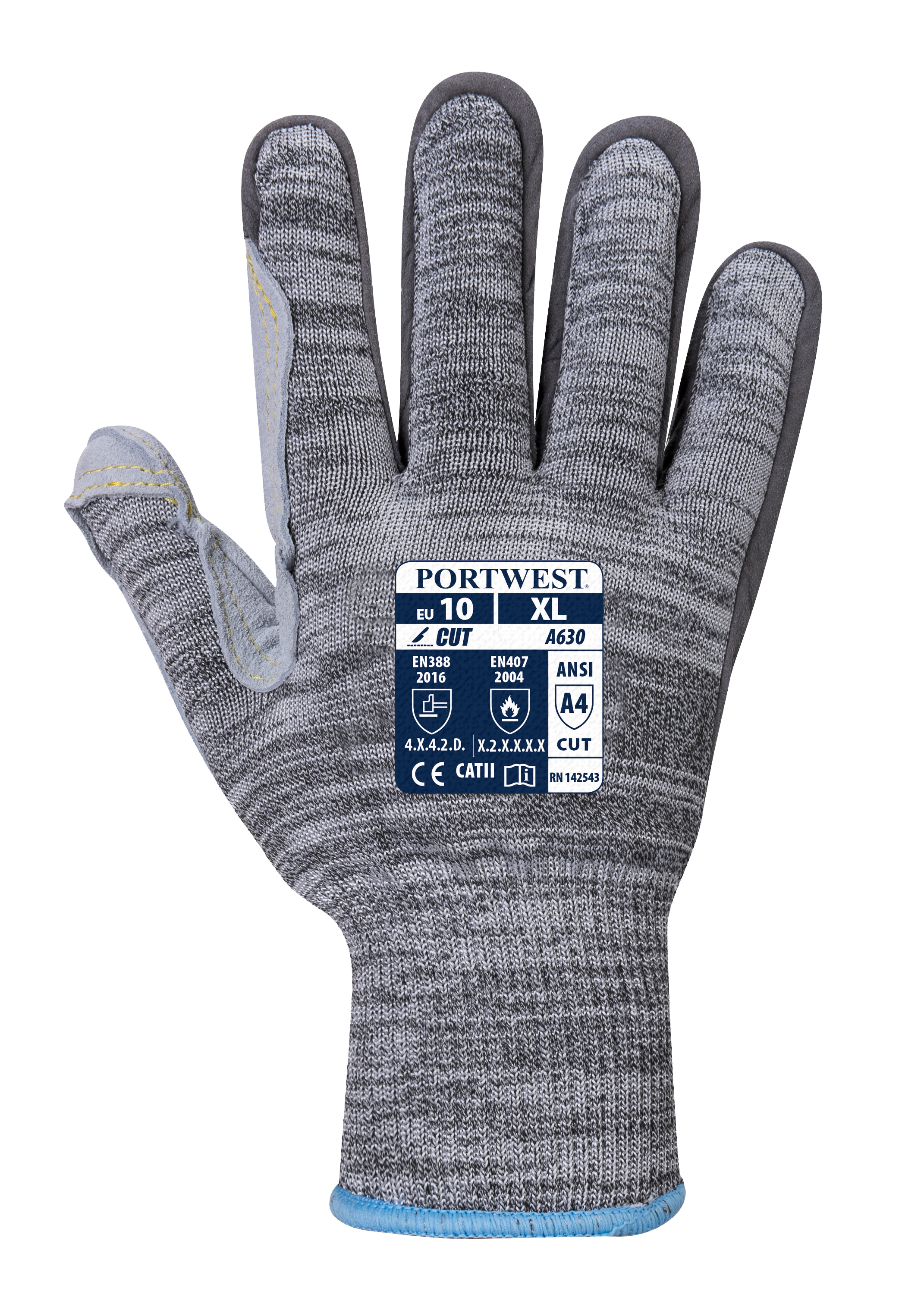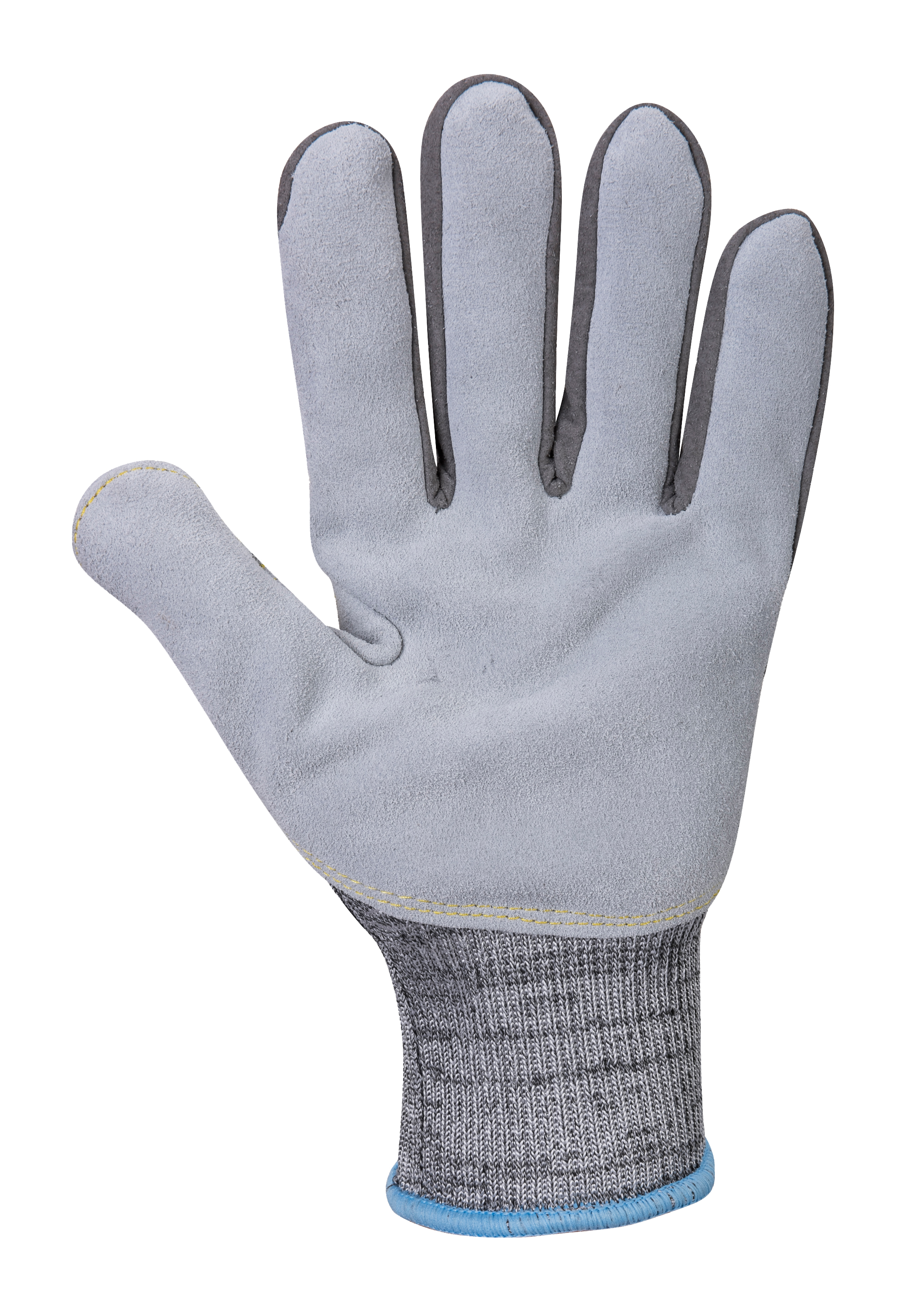 Cut Level 5protection glove with leather trim on palm for better grip, abrasion resistance and wearing time. Ideal for handling glass.
