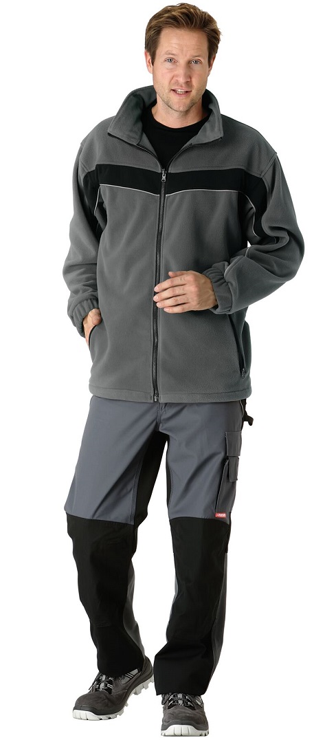 The Plaline fleece jacket or Plaline softshell jacket can be worn as an inner jacket in the Plaline all-weather jacket and thus becomes a winter jacket. 2 side pockets with zip, full-length front zip, sleeve cuffs with elastic, reflective piping as safety equipment.