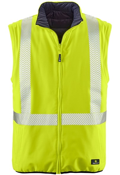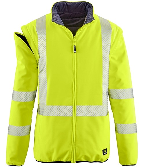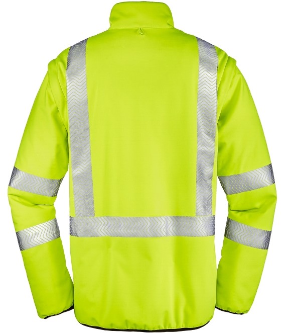 Extremely versatile. The RENO reversible jacket offers everything that characterizes a high-visibility jacket on the one hand, and a black version in an inconspicuous, modern design on the other. In addition, the sleeves can be zipped off and the jacket can also be worn as a vest. More flexibility is not possible! Segmented, laminated reflective strips run around the body and sleeves as well as over the shoulders (suspenders reflective strips). An innovative functional membrane guarantees that the fabric is highly waterproof and very breathable. The ripstop fabric is robust, hard-wearing and therefore particularly durable. RENO can also be combined with all 4PROTECT® high-visibility/weatherproof jackets. Whichever way you look at it: The jacket is and remains a highly functional all-rounder.