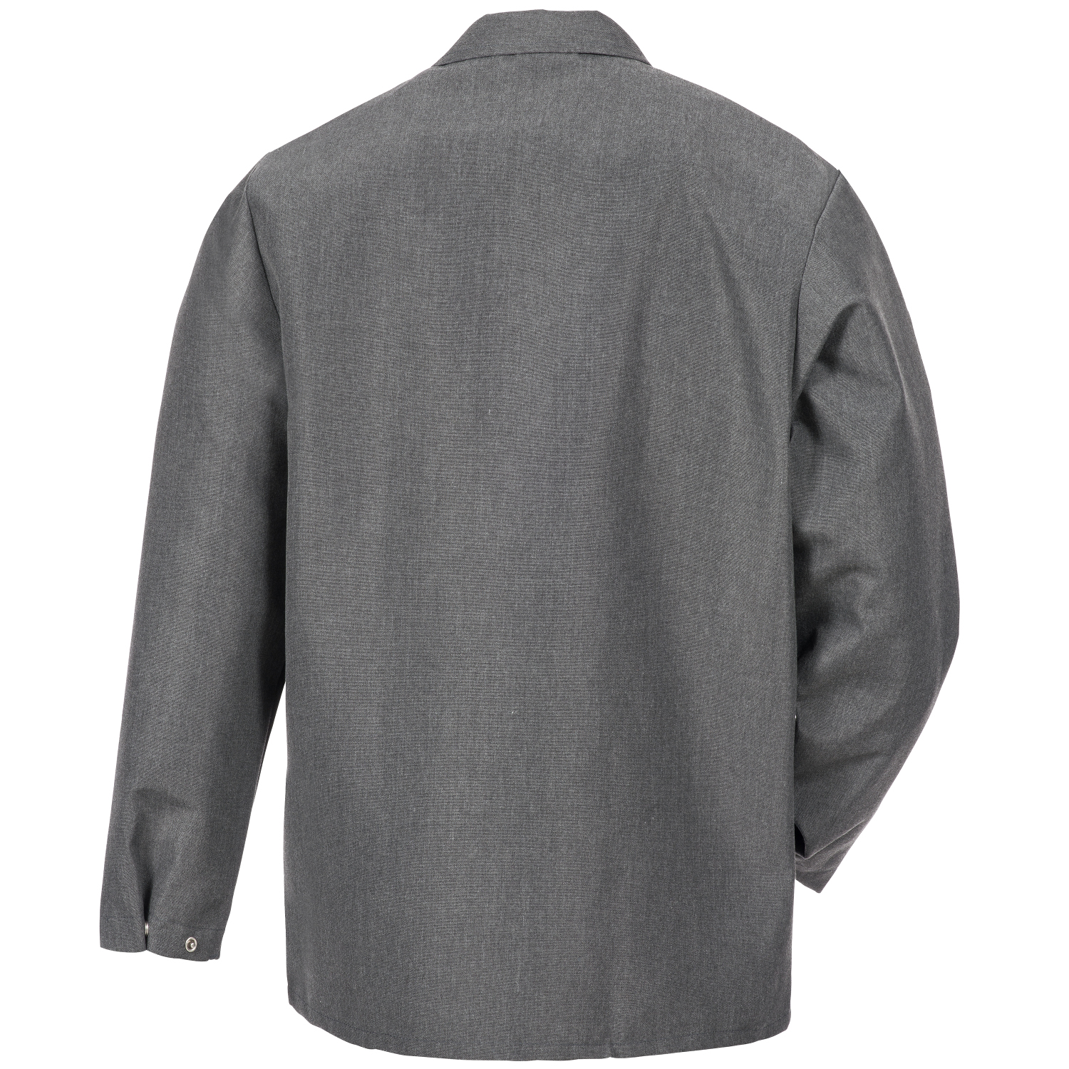 - 1 breast pocket on the left and 2 side pockets with flaps and concealed press studs
