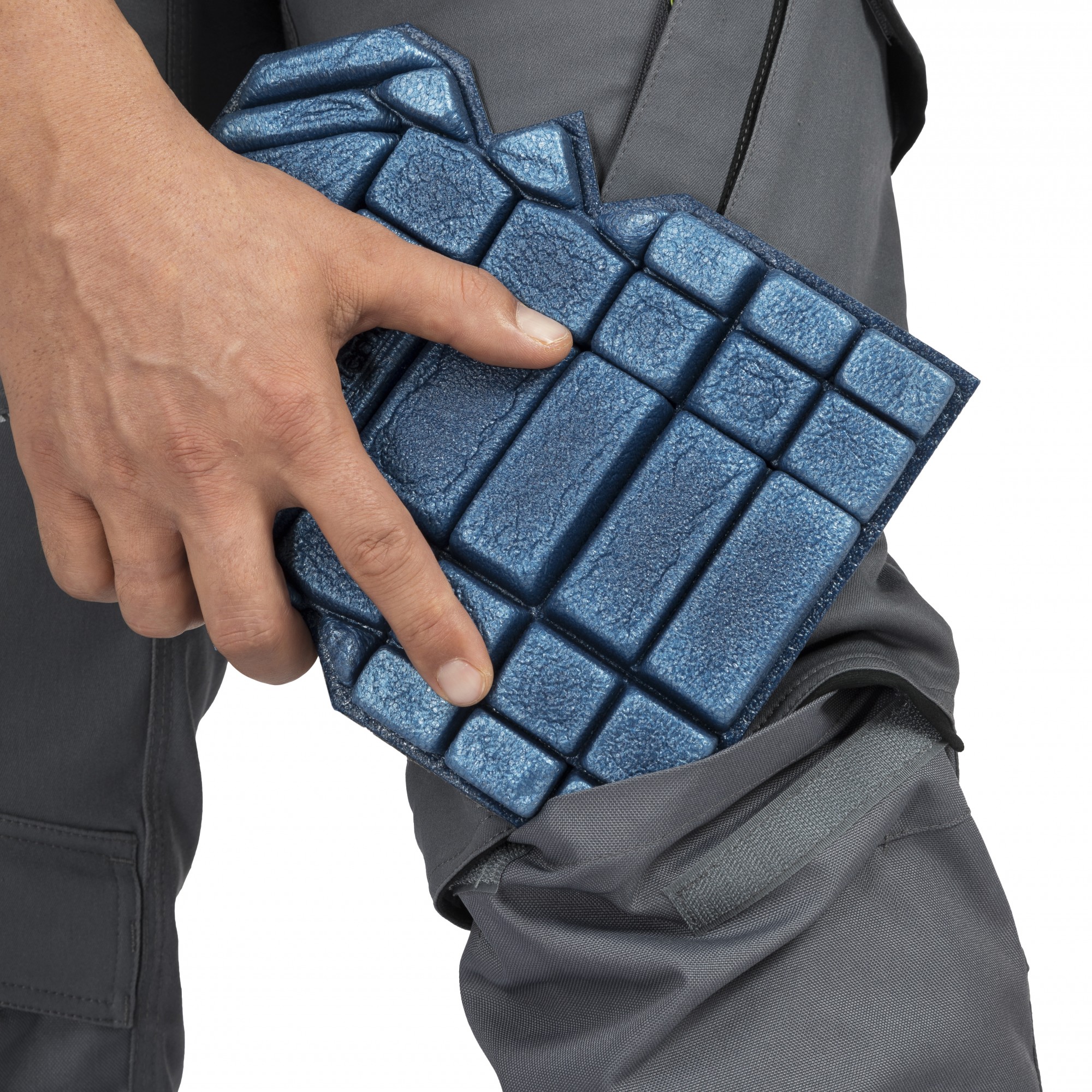 Longitudinal tabs prevent the knee pad from slipping out of place