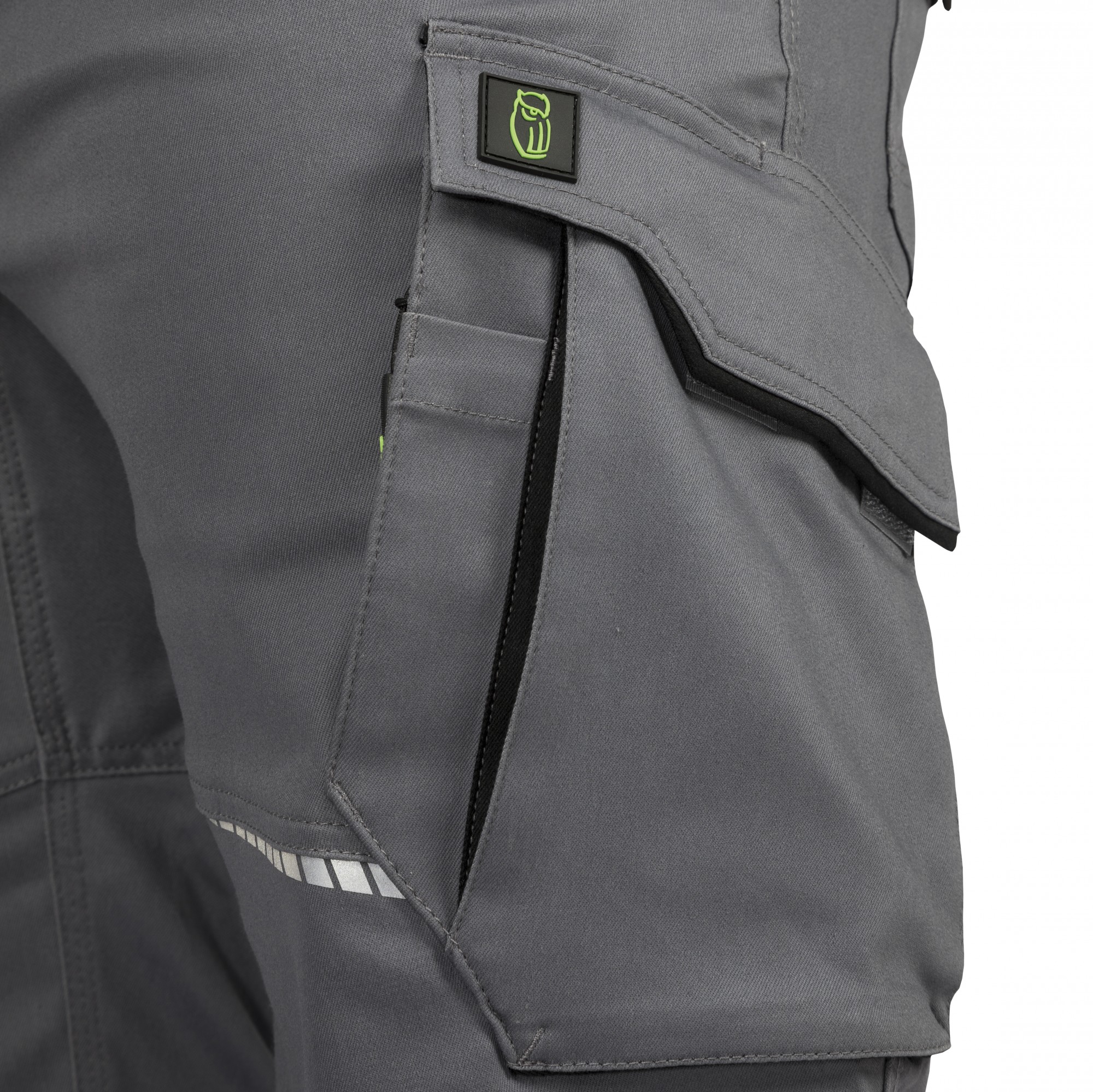 Cargo pocket with two compartments plus one zippered insert pocket and one pen pocket on the left leg