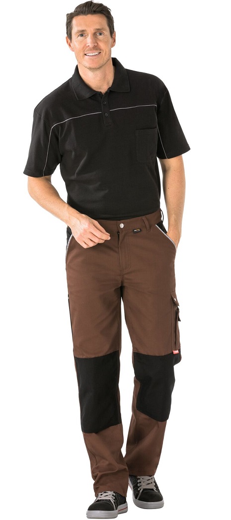 This article, in conjunction with a knee PLANAMpad (Art. No. 9901027), is certified as knee protection according to EN 14404 Type 2, Level 1. Knee pockets made of Cordura®, 2 set-in pouch pockets made of Cordura®, double ruler pocket made of Cordura® on the right, reflective piping on the pocket openings and pocket flaps, thigh pocket on the left with flap and press studs, mobile phone pocket on top, elasticated waistband, 1 reinforced back pocket on the right, round waistband with 7 belt loops and jeans button, zip in trouser fly.