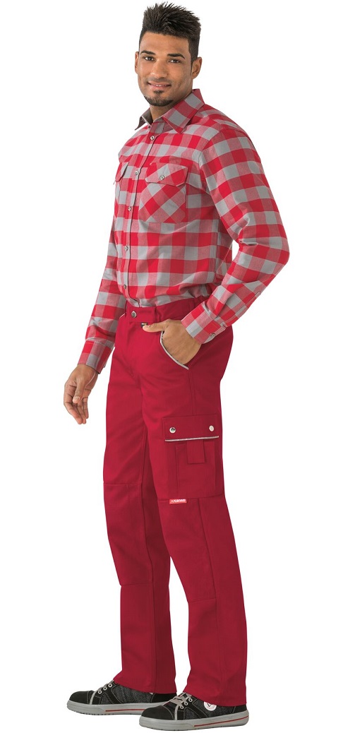 This article, in conjunction with a knee PLANAMpad (Art. No. 9901027), is certified as knee protection according to EN 14404 Type 2, Level 1. Knee pockets made of Cordura®, 2 set-in pouch pockets made of Cordura®, double ruler pocket made of Cordura® on the right, reflective piping on the pocket openings and pocket flaps, thigh pocket on the left with flap and press studs, mobile phone pocket on top, elasticated waistband, 1 reinforced back pocket on the right, round waistband with 7 belt loops and jeans button, zip in trouser fly.