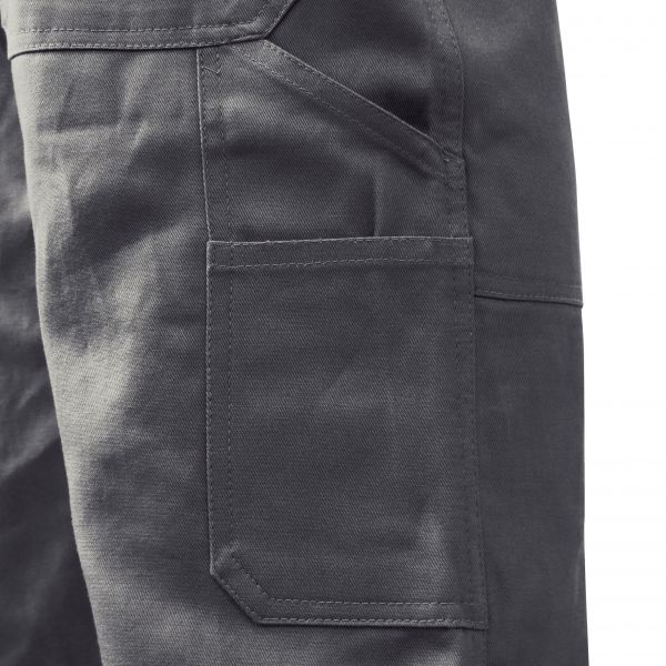 Wellwork Protection, robust, classic cotton - high durability, skin-friendly, breathable, temperature compensating and washable up to 60 °C, waistband with elastic and 7 belt loops, fly with high quality metal zipper,pockets: 2 patch pockets,back pocket with button, double folding rule pocket, thigh pocket with box pleat and flap, closable with 2x Velcro