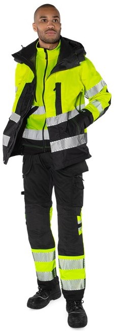 High-visibility workman's trousers with highly elastic stretch inserts for superior comfort and great freedom of movement. The outer material is durable, dirt, oil and water repellent, the inside is made of soft cotton. Washable at up to 60 degrees.