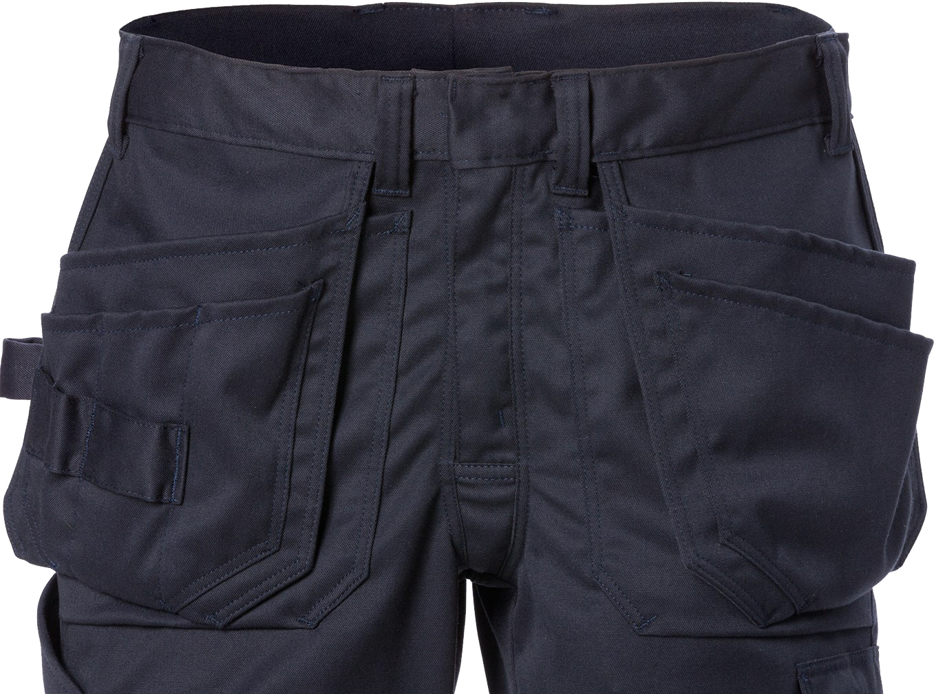 2 CORDURA®-reinforced loose-hanging pockets - one with 3 pockets and tool loops, the other with extra pocket