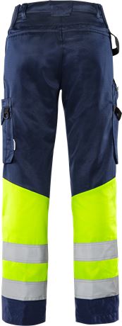 Sustainable High Vis pants for women, made of lightweight organic cotton and recycled polyester. Rib knit stretch inserts at waistband for added comfort and flexibility. Reinforced with CORDURA® in exposed areas. With EPD (Environmental Product Declaration).