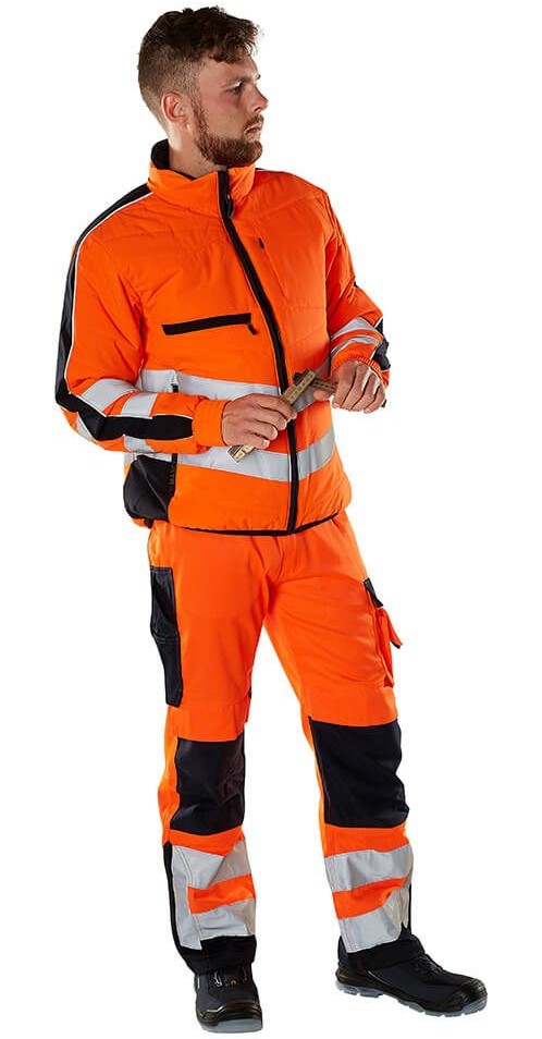 Vertical reflective stripes on the outside of the legs for increased visibility