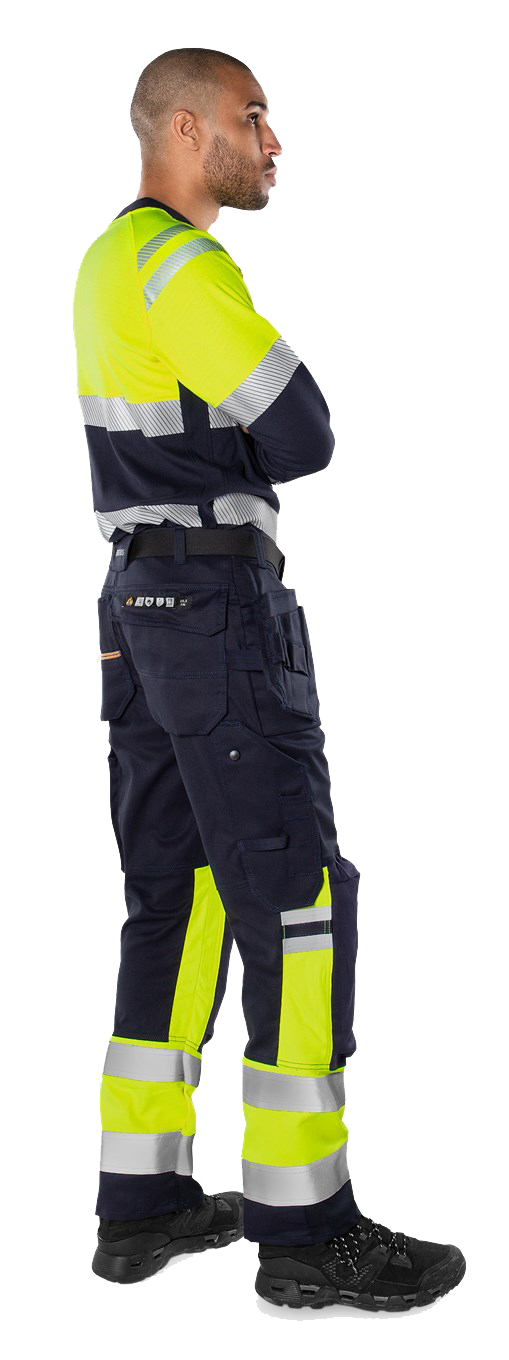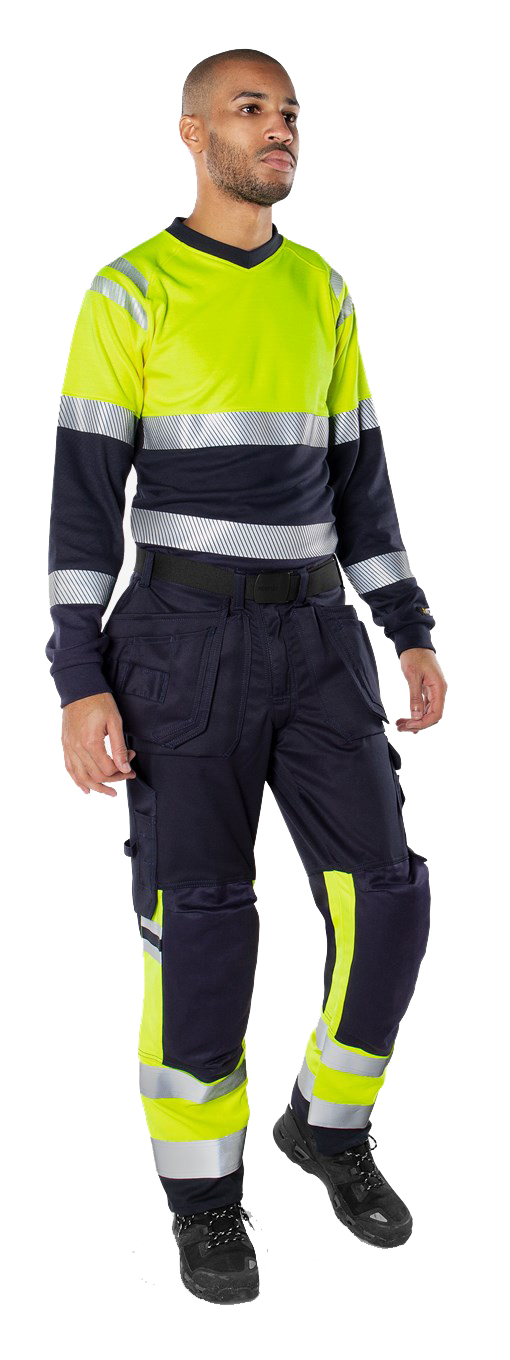 Flame protection T-shirt with high vis and arc protection. Soft T-shirt with inherent flame protection and comfortable, reflective stretch band.