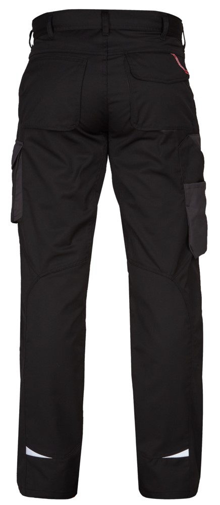 Funktionelle Arbeitshose mit vielen Details. Optimale Passform, u. a. sorgen ergonomisch geformte Knie und Panel an der Innennaht im Schritt für mehr Bequemlichkeit. Zwei geräumige, schräg sitzende Einschubtaschen vorne. Schlaufe mit D-Ring (vorne) zur Befestigung einer ID-Karte. Zwei geräumige Gesäßtaschen, die rechte mit Patte und Klettverschluss. Schenkeltasche mit Reißverschlusstasche fürs Handy, zusätzliche kleine Tasche. Zollstocktasche mit zusätzlichen Fächern. Die Zollstocktasche hat einen freihängenden Boden. Reflexstreifen unten an den Hosenbeinen für mehr Sichtbarkeit. Für Industriewäsche geeignet.