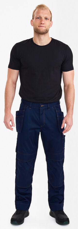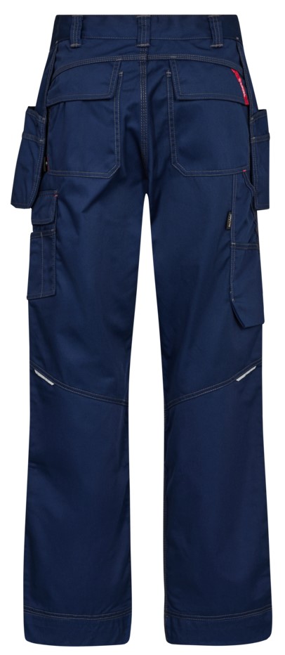 Funktionelle Handwerkerhose mit Kontraststeppnähten. Optimale Passform, ergonomisch geformte Knie. Zwei geräumige, schräg sitzende Einschubtaschen sowie zwei Holstertaschen vorne. Zwei Gesäßtaschen mit Patte. Schenkeltasche mit Patte sowie Einschüben für z. B. Stifte. Freihängende, verstärkte Zollstocktasche mit extra Fächern garantiert optimale Bewegungsfreiheit. Verstellbare Hammerschlaufe. Verstärkte Knietaschen mit zwei Einstellmöglichkeiten für Knieschutzkissen. Verstärkter Saum der Hosenbeine für extra hohe Verschleißfestigkeit. Gute Sichtbarkeit durch Reflexpaspeln mittig hinten auf den Hosenbeinen. Die Hose verfügt über einen extra breiten Hosenaufschlag, sodass sich bei Bedarf die Schrittlänge verlängern lässt. Für zusätzliche Beinlänge muss nur ein Saum aufgetrennt werden, dahinter verbirgt sich ein zusätzlicher Saum.