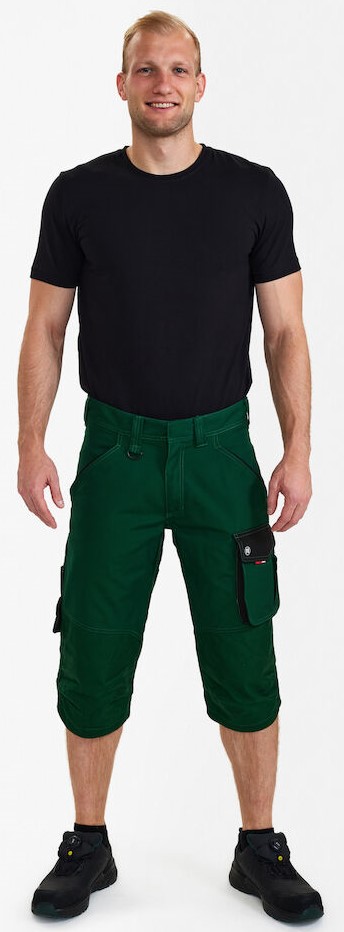 Funktionelle 3-4-Hose mit vielen Details. Optimale Passform, u. a. sorgen ergonomisch geformte Knie und Panel an der Innennaht im Schritt für mehr Bequemlichkeit. Zwei geräumige, schräg sitzende Einschubtaschen sowie zwei Holstertaschen vorne. Schlaufe mit D-Ring (vorne) zur Befestigung einer ID-Karte. Zwei geräumige Gesäßtaschen mit Patte und Klettverschluss. Schenkeltasche mit Reißverschlusstasche fürs Handy, zusätzliche kleine Tasche. Sie ist geräumig und sorgt dank des freihängenden Bodens für mehr Bewegungsfreiheit. Unten verstärkte Zollstocktasche mit zusätzlichen Fächern. Auch die Zollstocktasche hat einen freihängenden Boden. Knieverstärkung/Knietasche mit Klettverschluss unten sowie zwei Einstellmöglichkeiten für Knieschutzkissen. Für Industriewäsche geeignet.