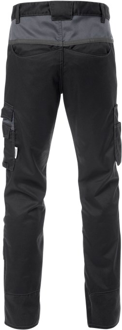 Moderne Hose für den Service-, Handwerks-, Industrie- oder Bausektor. Gefertigt aus leichtem und haltbarem Material mit mechanischem Stretch für viel Bewegungsfreiheit. Mit Knietaschen ausgestattet. Geeignet für Industriewäsche.