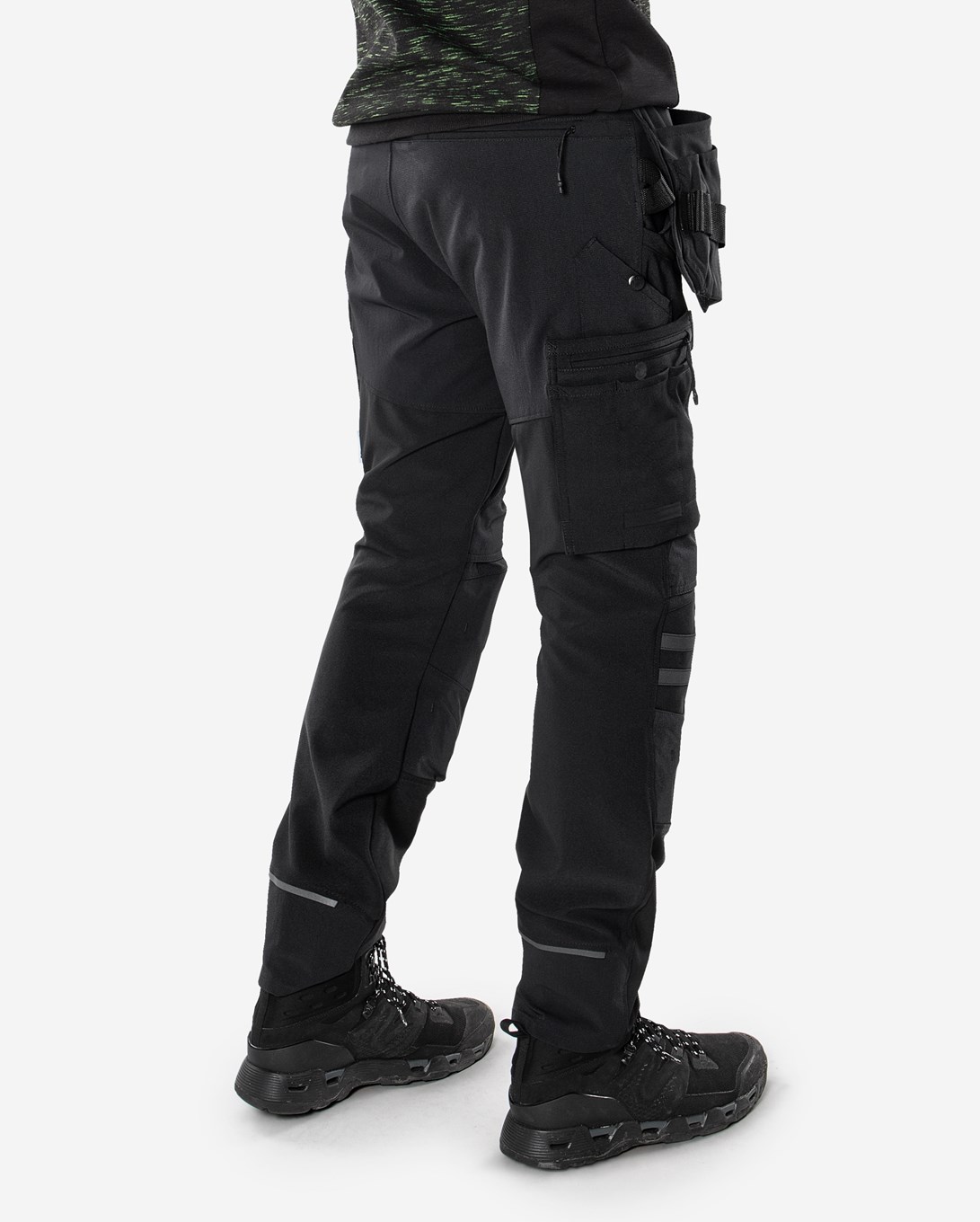 - Zollstocktasche aus Ripstop-Stretch, Beintasche mit Druckknopfverschluss, Tasche mit Reißverschluss, Stifttasche, 2 Werkzeugtaschen sowie Knopf und Schlaufe für ein Arbeitsmesser