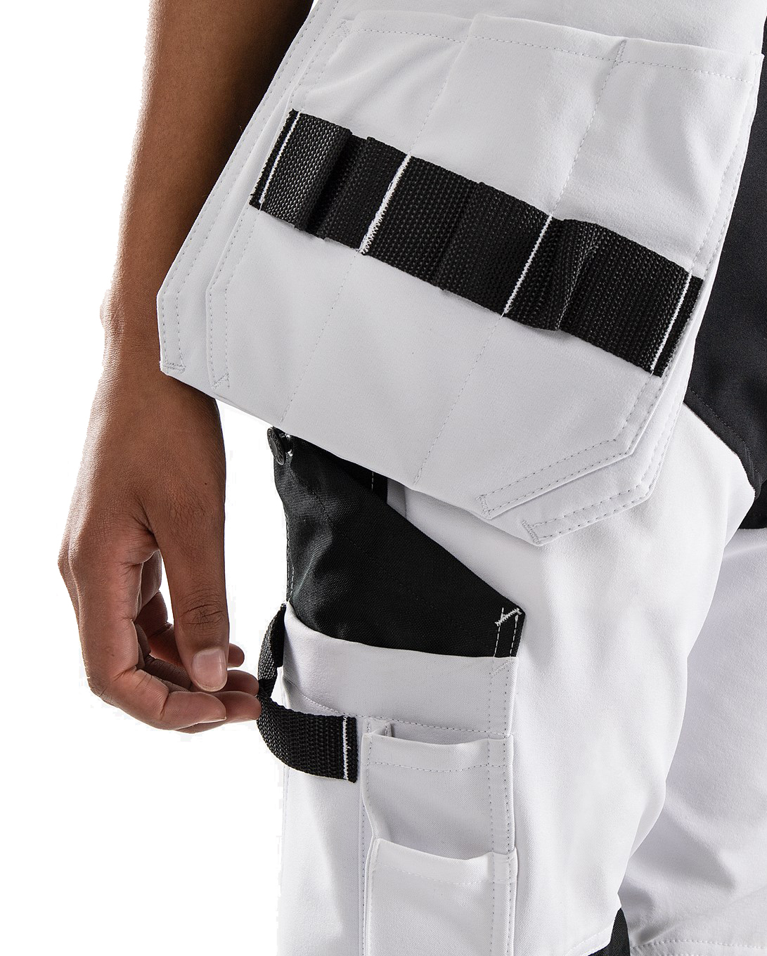 Malerhose aus 4-Wege-Stretchmaterial für hohen Tragekomfort und Bewegungsfreiheit. Vollständig ausgestattetes und verstärktes Handwerkermodell mit speziellen Taschen und Funktionen für optimale Funktionalität für Maler.