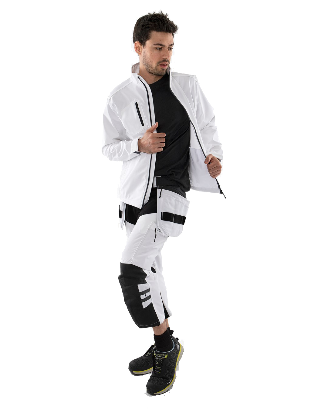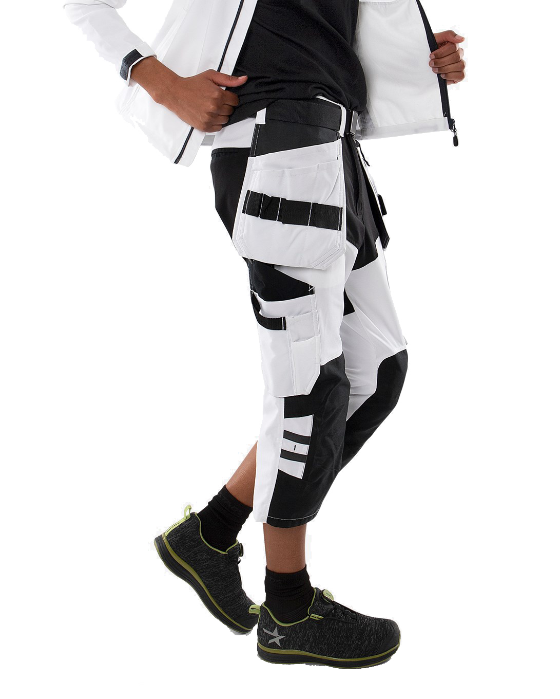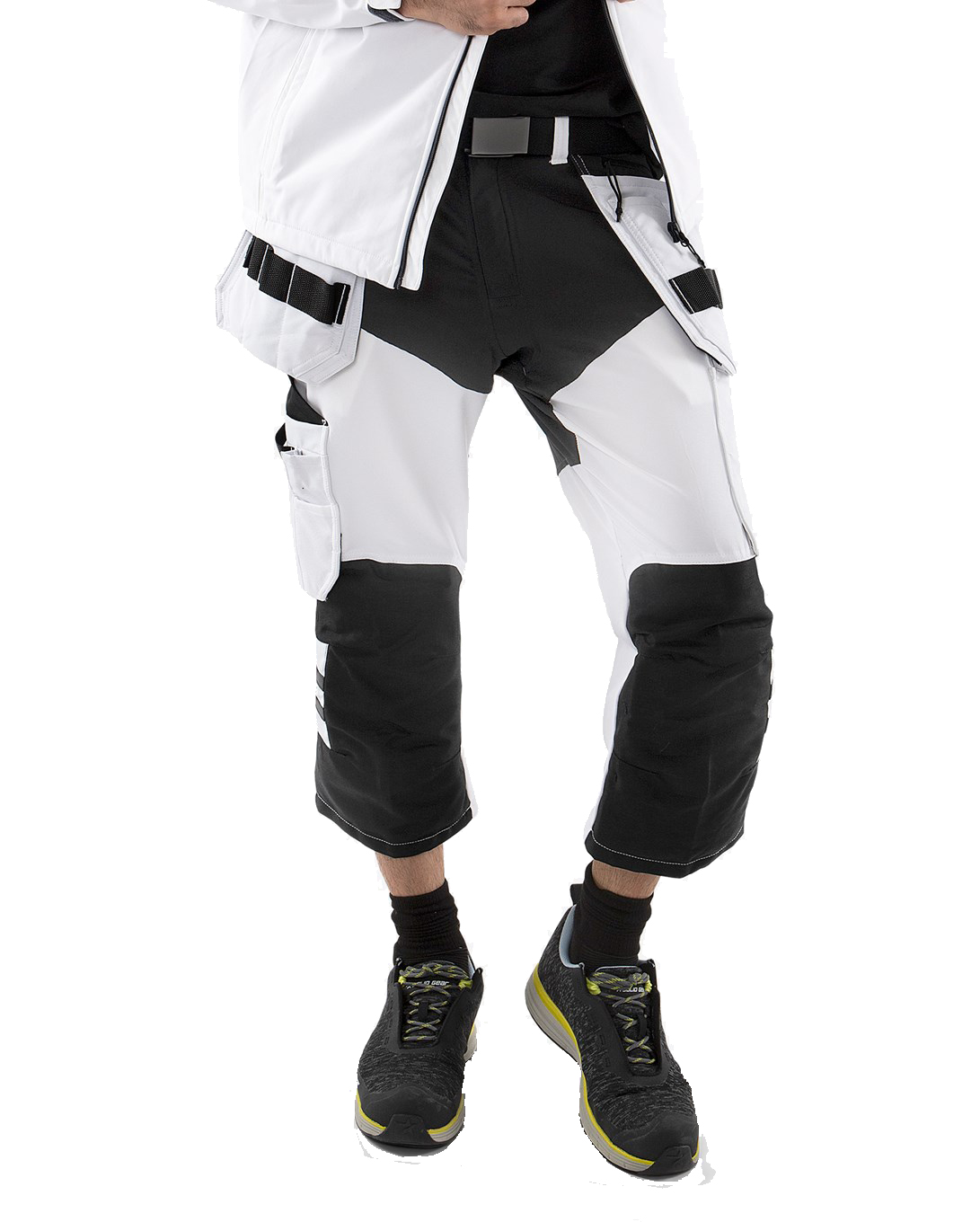 Maler-3/4-Hoseaus 4-Wege-Stretch-Material für hohen, leichten Tragekomfort und Bewegungsfreiheit. Vollständig ausgestattetes und verstärktes Handwerkermodell mit speziellen Taschen und Funktionen, die optimale Funktionalität für Maler bieten.