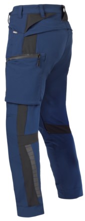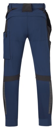 Arbeitshose aus strapazierfähigem Material. Schwarze Designer-Reflexe, 4-Wege-Stretch und vorgeformte Beine.