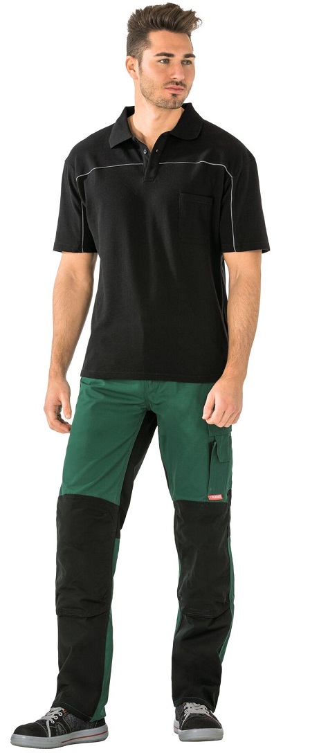 Dieser Artikel ist in Verbindung mit einem PLANAM Kniepolster (Art.-Nummer 9901027) als Knieschutz nach EN 14404 Typ 2, Stufe 1 zertifiziert. 2 eingesetzte Beuteltaschen, 2 aufgesetzte Knietaschen, doppelte Maßstabtasche rechts, links Oberschenkeltasche mit Patte und Klettverschluss, Handytasche links, Gummizug im Bund, 2 Gesäßtaschen mit Patten und Klettverschluss, Reißverschluss im Hosenschlitz, Reflexbiesen als Sicherheitsausstattung.