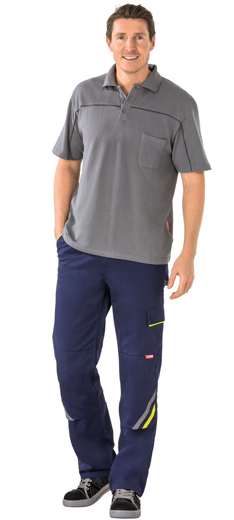 Dieser Artikel ist in Verbindung mit einem PLANAM Kniepolster (Art.-Nummer 9901027) als Knieschutz nach EN 14404 Typ 2, Stufe 1 zertifiziert. 2 eingesetzte Beuteltaschen, 2 aufgesetzte Knietaschen mit farblichen Applikationen, doppelte Maßstabtasche, links Oberschenkeltasche mit Patte und Klettverschluss, Handytasche, Gummizug im Bund, 2 Gesäßtaschen mit Patten, Reißverschluss im Hosenschlitz, Tascheneingriffe und Taschenpatten mit farblichen Biesen abgesetzt.
