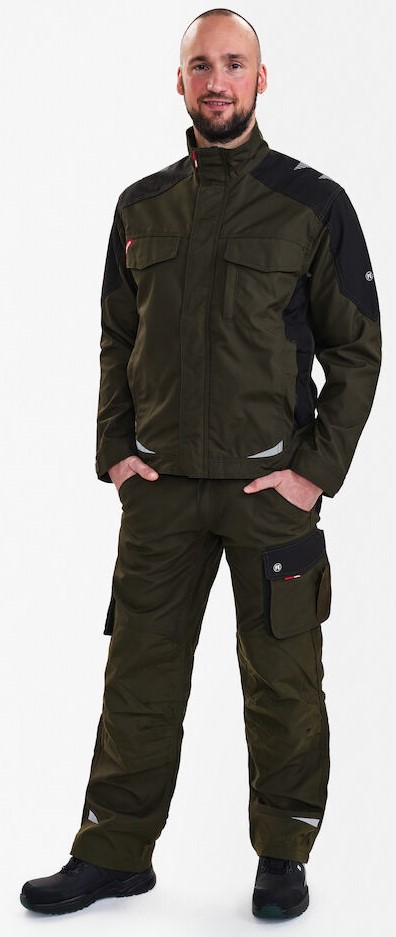Funktionelle Arbeitsjacke mit vielen Details. Verlängerte Rückenpartie mit Bewegungsfalte. Verdeckter Reißverschluss vorn. Verstärkte Ellbogen. Zwei geräumige Einschubtaschen. Zwei Brusttaschen mit Patte – die rechte mit Schlaufe und D-Ring zur Befestigung einer ID-Karte, die linke mit zusätzlicher Reißverschlusstasche fürs Handy. Zwei große Innentaschen mit Klettverschluss. Verstellbare Ärmelbündchen. Reflexstreifen auf den Schultern sowie vorne und hinten für mehr Sichtbarkeit. Für Industriewäsche geeignet.